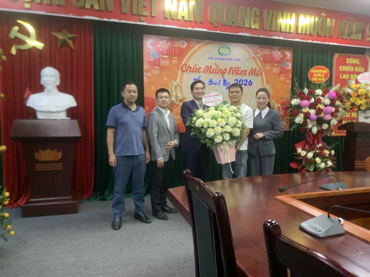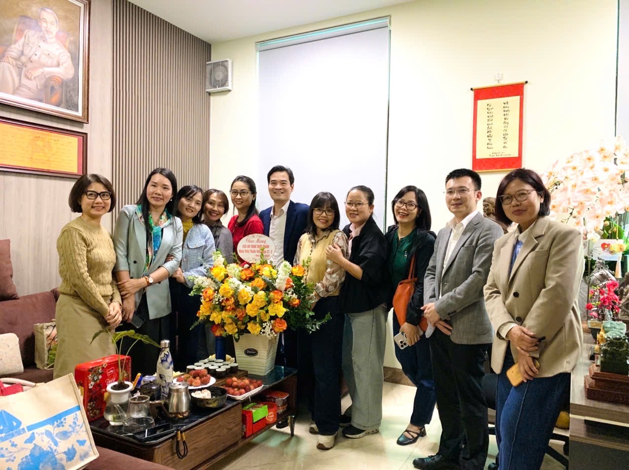 Các đơn vị trao tặng những lẵng hoa tươi thắm, gửi lời chúc mừng tốt đẹp đến tập thể lãnh đạo, cán bộ, công chức, viên chức và người lao động Cục An toàn thực phẩm. Thay mặt lãnh đạo Cục An toàn thực phẩm, TS.DS Chu Quốc Thịnh – Quyền Cục trưởng Cục An toàn thực phẩm bày tỏ lời cảm ơn sâu sắc tới tình cảm, sự quan tâm của các đơn vị. Đồng thời, TS.DS Chu Quốc Thịnh khẳng định Cục An toàn thực phẩm sẽ nỗ lực thực hiện tốt công tác an toàn thực phẩm, góp phần cùng ngành y tế nâng cao chất lượng phục vụ bảo vệ sức khỏe Nhân dân.